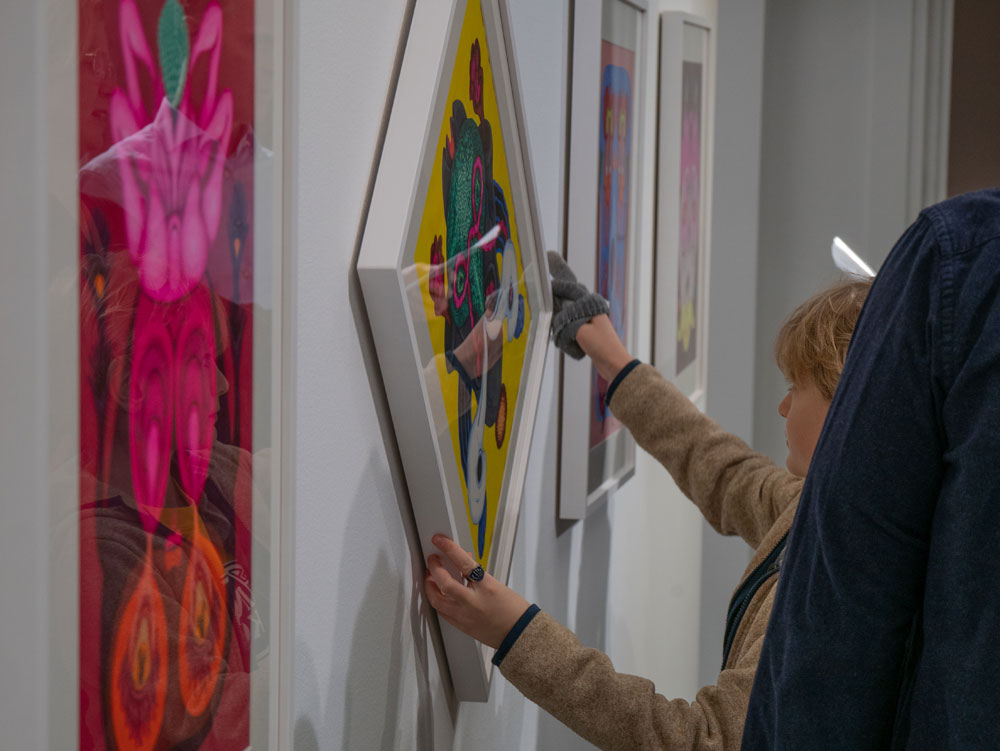 In recent years, Fanny Senocq has drawn on events from working life as a starting point for exploring group dynamics. By flipping the narrative, seemingly concrete ideas about power, hierarchy, myth-making, and the cult of genius are transformed into a unique, dynamic visual language — one that evokes Rorschach tests, but also Arcimboldo’s playfully reversible still lifes. Senocq draws inspiration from interpersonal interactions, from the hypnotic and sometimes destructive force of patterns, and from emotions that demand to be excavated.